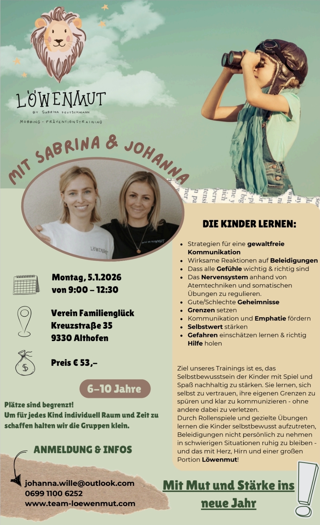 Mehr Infos & Anmeldung bitte direkt bei Tanja unter +43 664 75 10 6688 oder verein-familienglueck@gmx.at