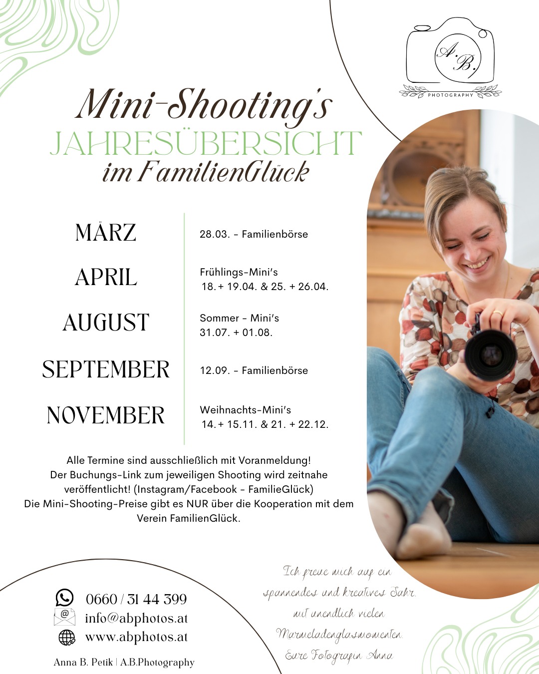 Die Anmeldung erfolgt ausschließlich über die Buchungslinks der Fotografinnen Christina Ebner und Anna Petik (www.abphotos.at).
